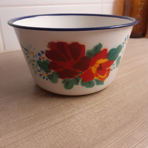 Astian koko; korkeus 10 cm, halkaisija 16 cm. Pientä kulumaa reunassa. Nouto Liedosta tai Turusta. Maksuna vain käteinen. Myös toridiili käy.