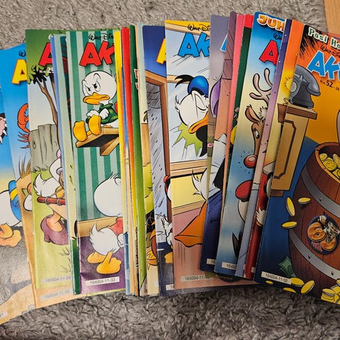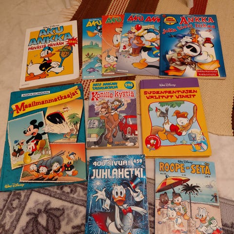 Vuoden 2004 Aku Ankka kirjat. Käytettyjä, mutta siistissä kunnossa. Myydään koko sarja. Hinta yhteishinta.