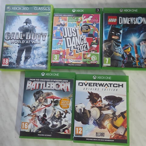Xbox One pelit sisältäen Doom, Watch Dogs, The Crew ja Call of Duty Advanced Warfare. Pelit ovat Xbox One -konsolille, eri peligenret ja ikäsuositukset vaihtelevat😊👍🏼