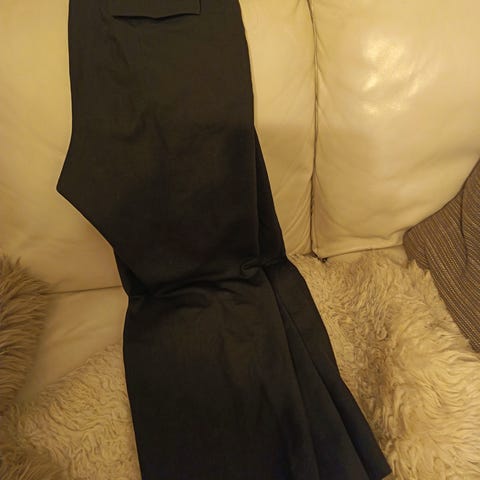 Arketin musta, pitkä trenssitakki. Koko 40 / L. Mitat: kainalo-kainalo n. 60 cm, olka-helma n. 115 cm. Takissa on vuori yläselän kohdalla, muuten vuoriton. Kiinnitys napeilla ja vyöllä.