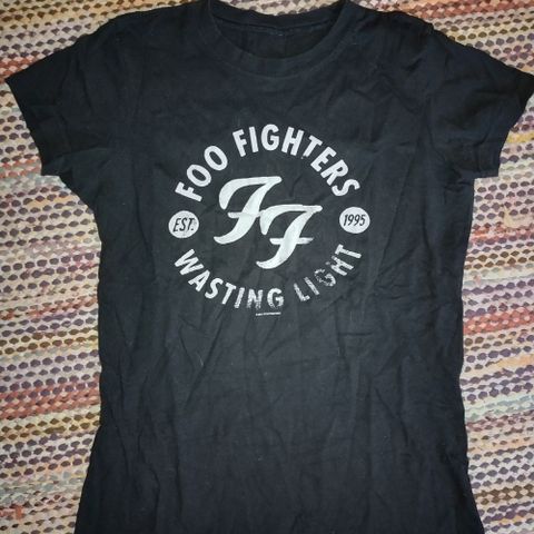 Foo Fighters Dave Grohl "Davy Grolton Band" bändipaita, 2007 Long Road To Ruin musiikkivideon tyyliin. Selässä teksti "Foo Fightin'". Yksi pieni reikä lähellä helmaa. Printti semi-ok kunnossa. Girly t-paita, eli tiukka istuvuus M-kokoiselle. 100% puuvillaa, ohutta kangasta.