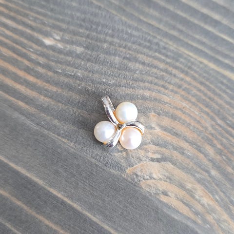 Hopeinen ja helmiäiskuvioinen iso simpukkariipus, halkaisija 5 cm. Viimeinen kuva liikkeen sivuilta.