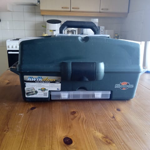 Laukussa on kantokahva ja olkahihna helpottamaan kuljetusta. Sopii kalastusvälineiden ja tarvikkeiden säilytykseen ja kuljetukseen. Laukku myydään ilman vieherasioita.
