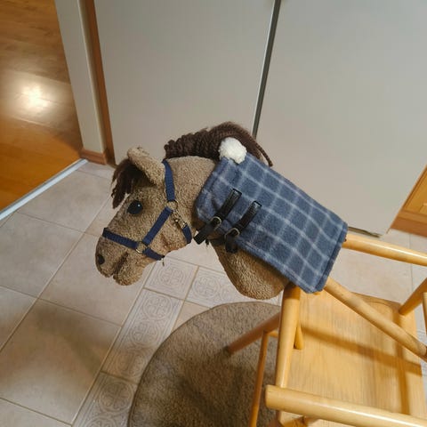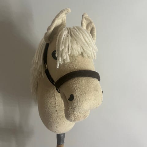 Hyväkuntoinen ja uudenveroinen keppihevonen.