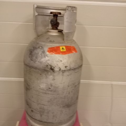 Toinen kaasupullo on täysi (painaa 25 kg) ja toinen on puolillaan (painaa 19,3 kg).