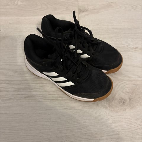Adidaksen mustat sisäpelikengät, koko 35,5. Hyvin vähälle käytölle jääneet.