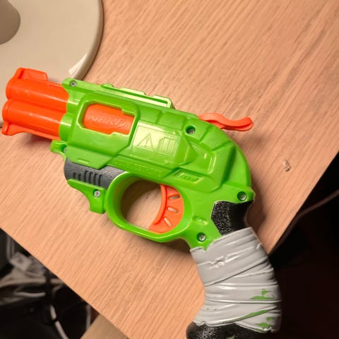 Hyväkuntoinen, iso Nerf-pyssy, johon saa ladattua kerralla paljon ammuksia. Nouto Espoo, Nöykkiö.