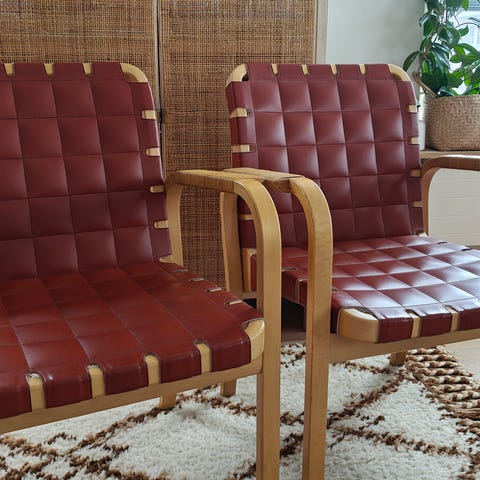 Musta Artekin 406-nojatuoli vankkarakenteisella istuimella pellavanauhasta. Tuolin kunto on virheetön ja hinta 650 euroa.