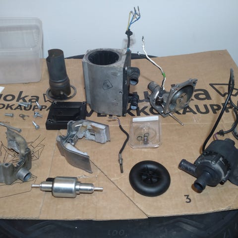 Vain lämmitin, vesipumppu ja polttoainepumppu ei tule mukana.