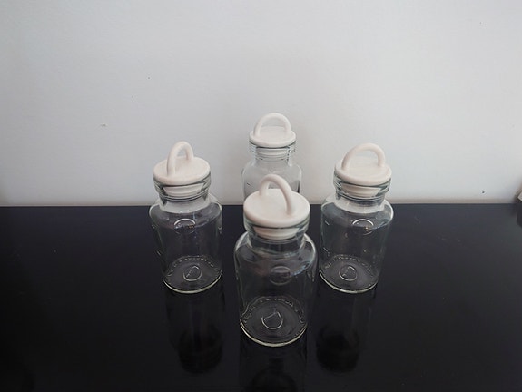 Pienet vaaleansiniset hyväkuntoiset ja ehjät juomalasit.