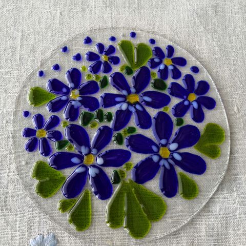 Kynttilänjalka, muottiin valettu kirkas lasi. Mahdollisesti kotimainen. Korkeus 18 cm, halkaisija jalka 9,5 cm, halkaisija kynttiläkuppi 5,5 cm. Kunto hyvä. Ei lohkeumia tai naarmuja.