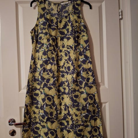 Vain muutaman kerta käytetty mekko. Strechiä ja paksua, hyvälaatuista puuvillaa. VY n. 84 cm ilman venytystä, strechillä n. 92 cm. Koko UK 14 / L.