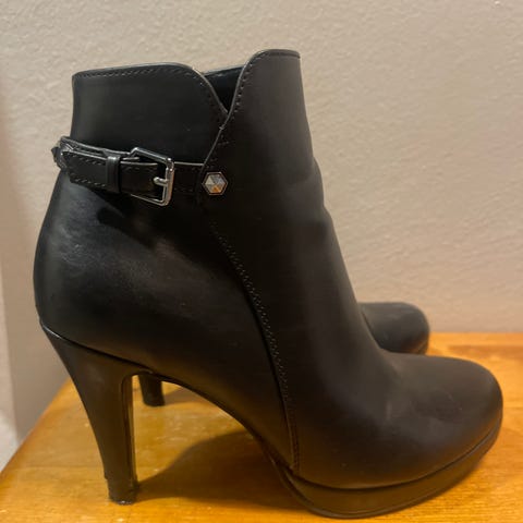 Caprice nilkkurit korolla koko 39, mustaa nahkaa. Nilkkapituiset korkokengät, joissa on tukeva korko