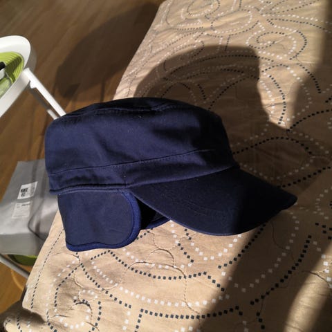 Lippis sinisenä, valmistettu 100% kierrätetystä polyesteristä. Koko one size, sopii useimmille käyttäjille.