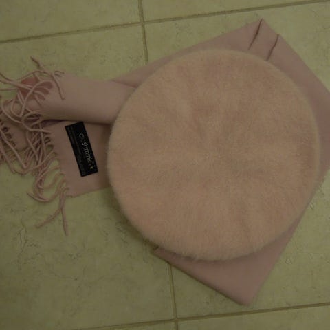 Ihana pörröinen ja laadukas vintagebaskeri viininpunaisessa väriassä. One size, ei kokolappua. Ei materiaalilappua, mutta tuntuu kashmirilta/angoralta tai kaninkarvalta. Laadukas ehdottomasti.