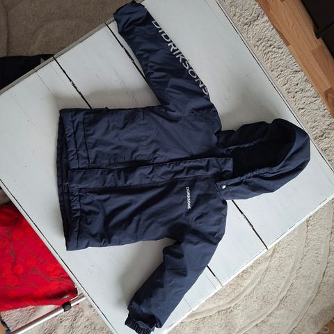 Didriksons toppatakki koko 110. Alareunassa muutama pieni tahra (ks kuva), muuten hyväkuntoinen. Hajusteettomasti pesty.
