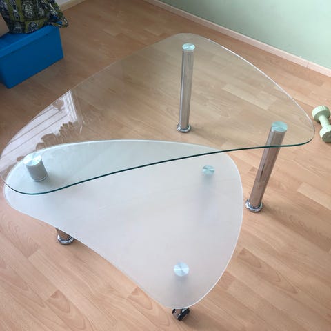 Hyväkuntoinen parveke pöytä. lasikansi.