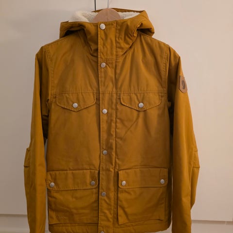 Uudenveroisessa kunnossa oleva välikausitakki. Takin voi vahata, jos siitä haluaa vedenkestävän.