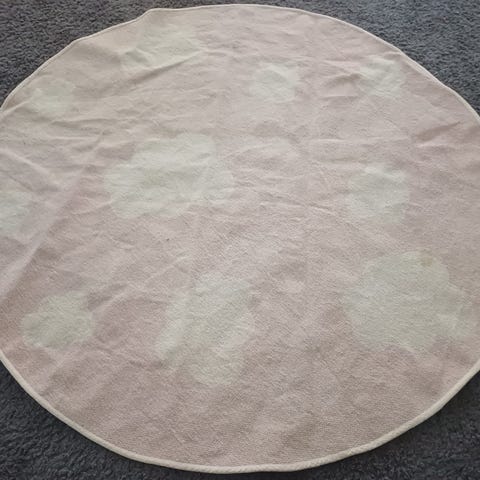 IKEA Matta Avila pyöreä matto, halkaisija 100 cm, viininpunainen väri. Materiaali ja hoito-ohjeet näkyvät tuotteen etiketissä. Sopii sisäkäyttöön lattian koristeluun ja pehmeyden lisäämiseen.