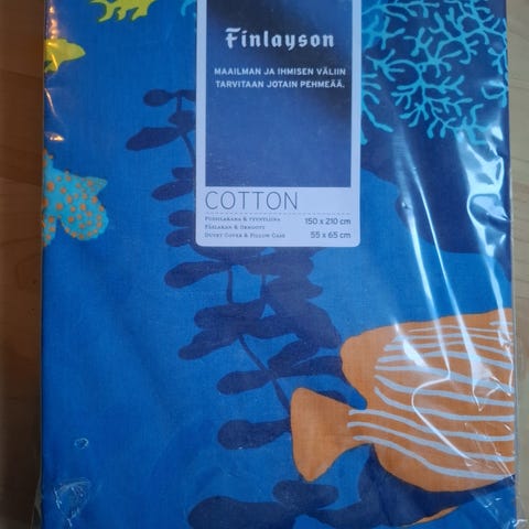 Finlayson Hattivatti -pussilakanasetti, valmistettu puuvillasta. Koko 150x210 cm, tyynyliina 55x65 cm. postitus onnistuu.