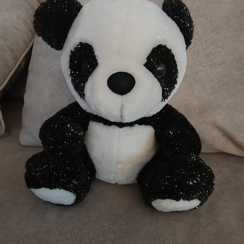 Hyväkuntoiset ja pestyt lasten pehmolelut. Pandan silmässä pientä naarmua, muuten en löytänyt moitittavaa. Pestyt. Molempien korkeus n. 30cm.