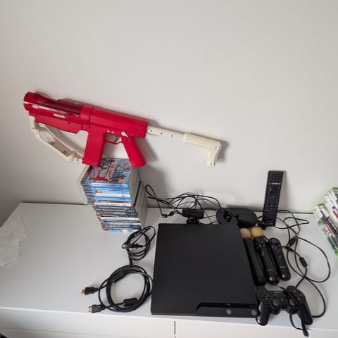 Ps3 Slim johon lukupää uusittu noin 100h sitten. Ja toinen uusi lukupää mukaan. Samalla laite putsattu pölyistä. Säilytetty pölyttömässä paikassa.