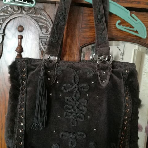 Musta italialainen Aventura-merkkinen käsilaukku, koko 36 x 20.