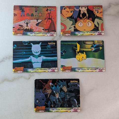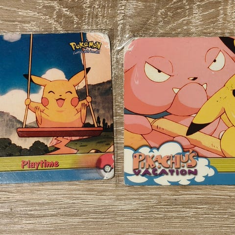 Pikachu's Vacation elokuvan Topps kortteja. Kunto hyvän ja tyydyttävän välillä. 7 kappaletta joista kaksi holoja.