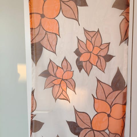 Teollisesti valmistettu verho. Koko 170cm*95cm. Ehjä, siisti käytetty verho. Kangas 91% puuvillaa ja 9% pellavaa.