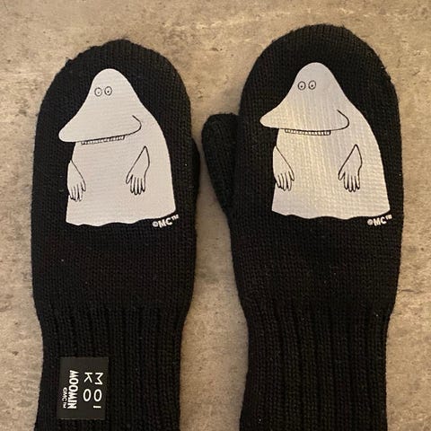 Kuvanmukaiset lämpimät vuorelliset lapaset. Jäänyt käyttämättä. Suunnilleen 5-6 vuotiaan kokoa.