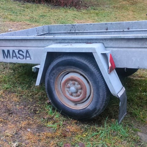Vaneripohja, renkaat ehyet.Pituus 2m, leveys 1480mm. Ei liikennekäytössä. Aisa hieman vääntynyt.