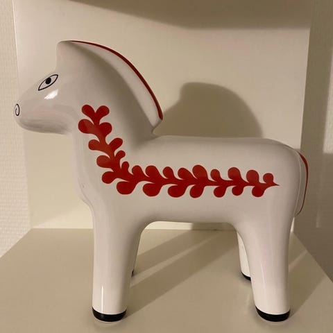 IKEA Dalahäst puinen koristehevonen. Korkeus 30 cm, pituus 26 cm, leveys 7 cm. Maalit hieman kuluneet korvista ja turvasta. Muuten ehjä ja kolhuton. Postitus onnistuu.