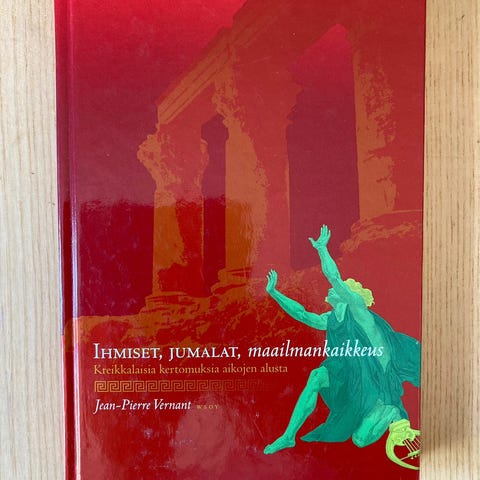 Jean-Pierre Vernant Ihmiset, Jumalat, maailmankaikkeus on kirja, joka käsittelee kreikkalaisen kertomuksen alkuperää. Teos sisältää analyysin myyttien ja filosofian suhteesta antiikin Kreikassa. Kirja on suomennettu Martti Bymanin toimesta ja julkaistu vuonna 1999. ISBN-numero on 951-0-30167-7.