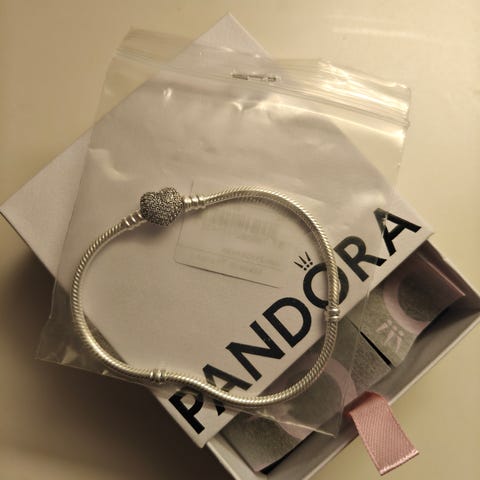 Käyttämätön ja uuden veroinen, aito Pandoran hopeinen rannekoru. Mukana tulee alkuperäinen laatikko korulle. Koko: 23cm