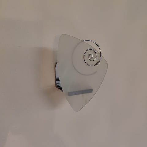 Seinälampetti. Kertaalleen paketista pois kuvausta varten. Kiillotettua kromia, yksi kirkas käsinpuhallettu lasipikari ja kolme eriväristä lasimaljaa tuikkiville. Lasimaljat tarkoitettu pikarin päälle, toisin kuin kuvissa sijoitettu. Mukana ruuvit seinään kiinnitystä varten. Korkeus 21cm