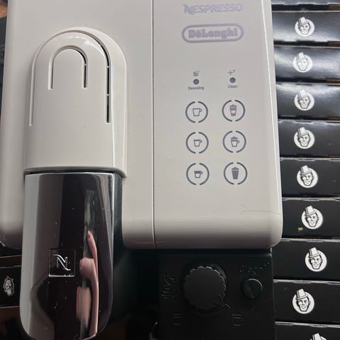 JOULULAHJAKSI Nespresso DeLonghi -kapselikahvikone Latissima+ F421- SI maidonvaahdottimella. Hyvin vähän käytetty, maidonvaahdotin testattu vedellä, kaikki toimii. Mukana suomenkielinen ohjekirja, ym. kapselikahvitietouteen liittyvää.