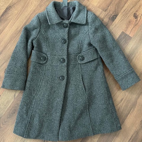 Siistikuntoinen villakangastakki. Vain yksi nappi puuttuu alhaalta (huomioitu hinnassa). Koko 116.