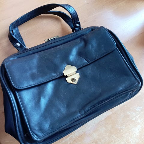 Tyylikäs, nahka/rotting, musta, siisti, sisällä vetok.tasku. koko: 20x29cm. Hihnan pituus noin 90cm. Vähän ollut käytössä. Virheetön.