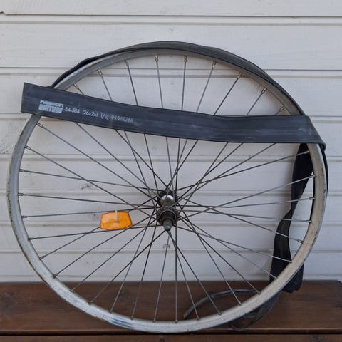 Rock rims, koristeteipattu sivu. Ei vipottava akseli. Pinnat ja laakerit ok.