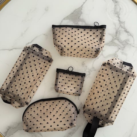Käyttämättömiä kosmetiikkapussukoita viisi kpl