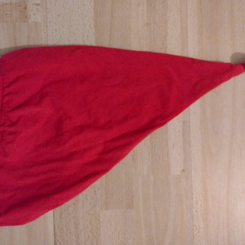 Punavalkoinen käsin kudottu unisex- tonttulakki.
