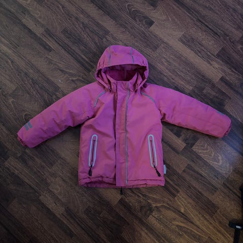 Lasten toppatakki koko 116. Pieni reikä hihassa (katso kuva). Muuten hyväkuntoinen.