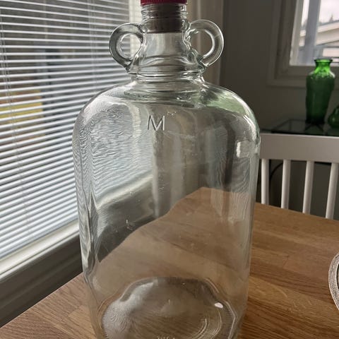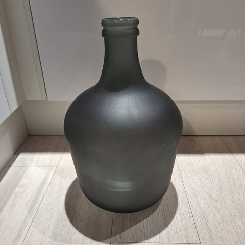 Lasipullo, tilavuus noin 10 litraa, tumma väri. Pullo on suorakulmainen ja valmistettu lasista. Sopii nesteiden säilytykseen.