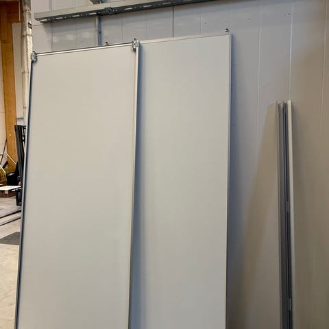 Kuvan mukaisia yksittäisiä liukuovia. Osa ovista sopii pareiksi saman värisen rungon takia. Osa menee yksittäisinä liukuoviratkaisuina. Ovet ovat uusia. Myydään kappaleittain edullisesti 50e /kpl.