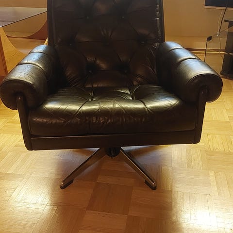 Kuvan mukainen ergonominen nojatuoli vaikkapa TV tuoliksi. Aitoa nahkaa. Vain haku, paitsi kuljetus Joensuun-Kuopion alueella pikku korvausta vastaan.