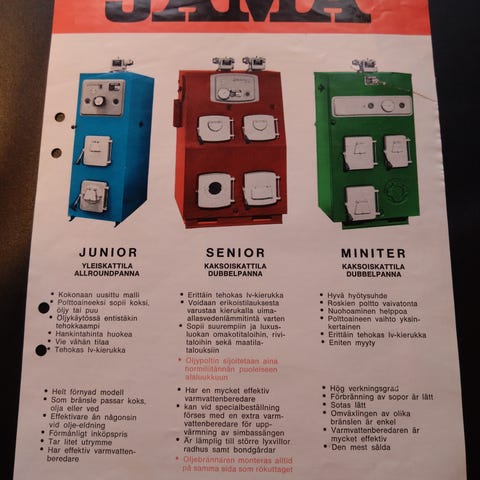 Veto kaksoispesäkattila. Kattilassa on lämminvesi kierrukka. Puupesään on tehty täyttölunkku myös etupuolelle. Kattilaa ei ole käytetty kuin muutama vuosi, kun tilalle on vaihdettu stokerikattila. Kattilaa säilytetty konesuojassa muutaman vuoden.