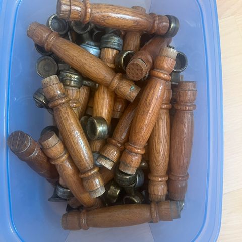 Messinkiset kaappien/laatikoiden nuppivetimet, 17 kpl. Ei putsattu.