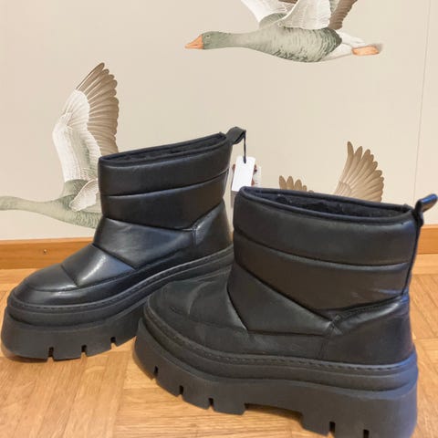 Uudet, mustat Pavement Lexi nahkaiset chelsea bootsit, jossa hopeiset metallisoljet. Vetoketju jalan sisäsivulla. Koron korkeus 3,5 cm ja pohja kumia. Vastaa kokoaan.