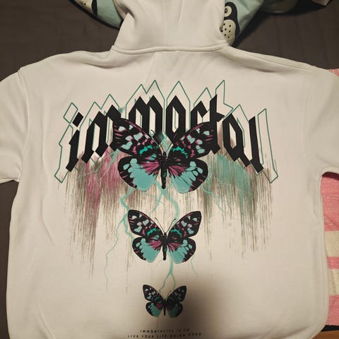 Siisti pinkin värinen huppari edessä muutama pieni reikä kulunut käytössä