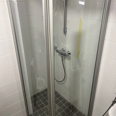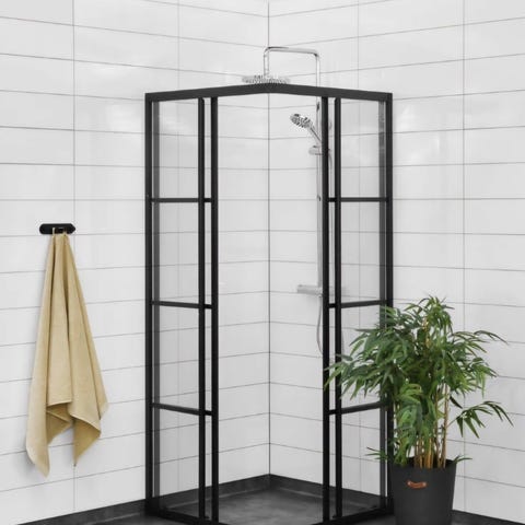 Cello karkaistu turvalasi suihkunurkkausovi kirkkaalla lasilla.
